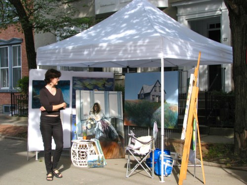 showing off artfully in the Stockade » artist at 37 Front St. waiting for the 60th Annual Stockade Villagers’ Outdoor Art Show to begin – 10Sep2011