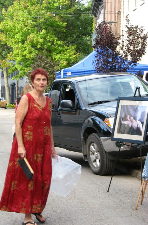 showing off artfully in the Stockade » Mabel Leon prepares for the Show – 60th Annual Stockade Villagers’ Outdoor Art Show – Schenectady NY – 10Sep2011