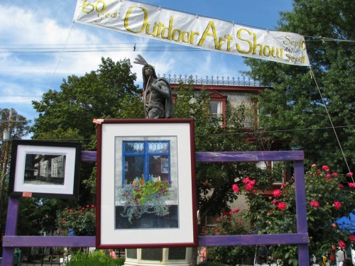 showing off artfully in the Stockade » Lawrence with flowers and winners – 60th Annual Stockade Villagers’ Outdoor Art Show – Schenectady NY – 10Sep2011