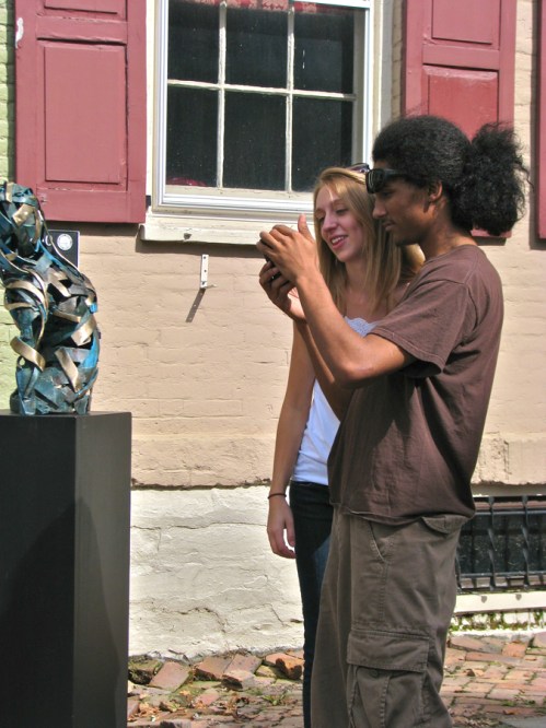 showing off artfully in the Stockade » Roxy Becofsky with her friend and model Jacob – Stockade Villagers’ Outdoor Art Show – Schenectady NY – 10Sep2011