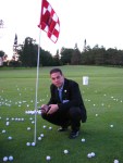 - pin and golf balls, with sunset, at Stadium Golf Course