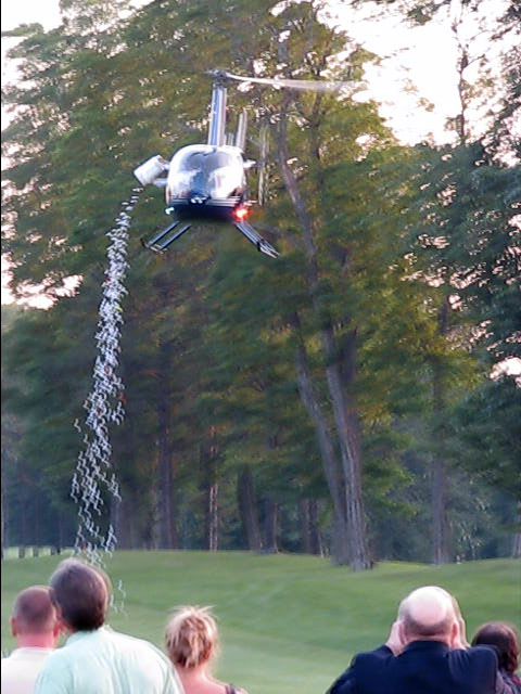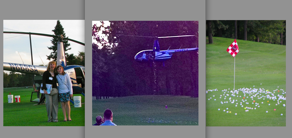 . . . Our Stockade neighbors Family & Child Service of Schenectady held their 6th Annual Golf Ball Drop — their signature fundraiser — last night at Stadium Golf Club, in Schenectady. Once again, nearly a thousand numbered golf balls that had been “purchased” for $10 each were dropped from a helicopter, which was flown by Bruce Mowery of North Country Heli-flite. The owners of the three balls closest to the pin won the following grand prizes: