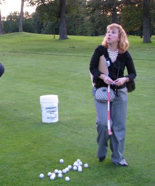 organizer Michele Shellard with tape measure