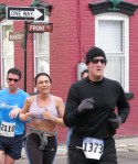 The slideshow below begins with two dozen photos taken of the lead runners near Lawrence Circle, the half-way point of the 15K race — where the runners broke into bright sunshine from the shelter of tree-lined Front St. A couple dozen more photos show runners, officials and spectators in shots that caught my eye. If you’d like your image identified by name please leave me a comment describing the picture in question. Apologies to all those runners who I was not quick enough to capture while you visited the Stockade.