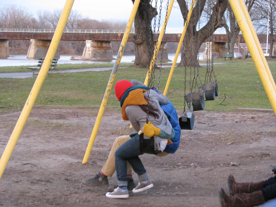 – “Hazel” & “Augustus” from “The Fault in Our Stars“, the upcoming novel by John Green, on the Riverside Park swing-set –