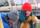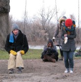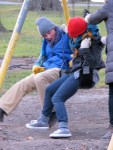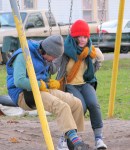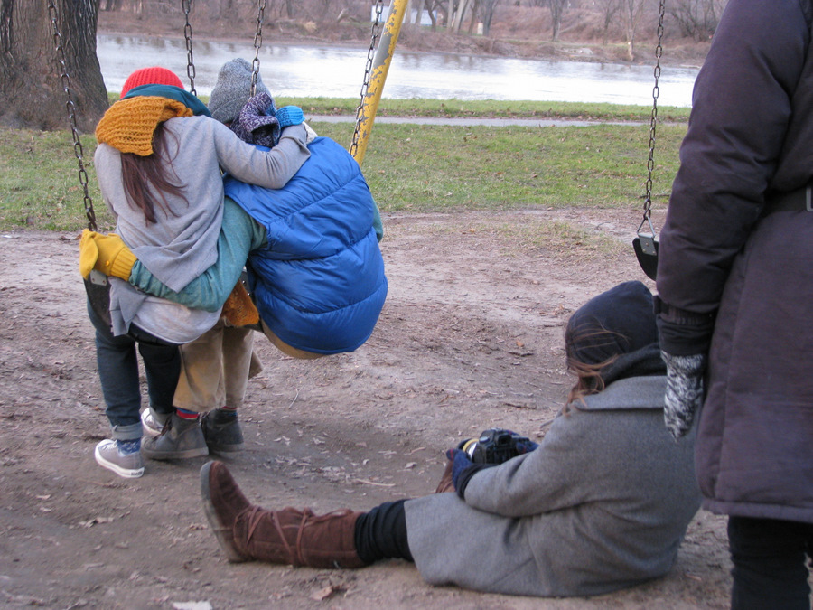 A photoshoot for best-selling author John Green‘s upcoming teen-romance novel The Fault in Our Stars (Dutton Juvenile, January 10, 2012) took place as promised this afternoon at the swing-set in the Stockade’s Riverside Park. I’m pretty sure that producer Stacie and her crew, including the models representing the novel’s two young lovers, felt the swings, the Park, the Mohawk, and the CSX train trestle made their drive from New York City well worthwhile. The return of cold, blustery weather made their hours in the Park a little frosty.