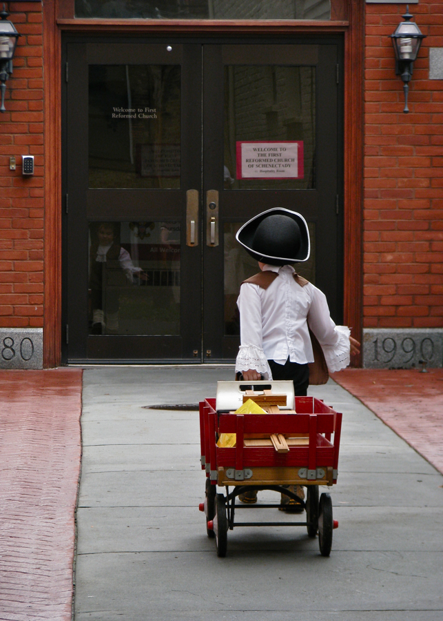 The Stockade segment of Our Town Schenectady gives some background history and then uses the annual Walkabout event to tell more of the story and show what makes our first-in-the-state historic district unique and inviting. The one-person staff and editorial board of suns along the Mohawk was proud to be asked to contribute to the Stockade segment, and most pleased to discover last night that WMHT’s production staff selected two dozen of our images for inclusion in the show. Below is a Slideshow of the pictures from suns along the Mohawk that help tell our Stockade story in Our Town Schenectady. In choosing the photos, I’m glad Joanne Durfee and her staff at WMHT decided to focus on the people who make the beautiful historic Stockade a living neighborhood — especially the residents who participate in events like the Walkabout, and the non-residents who come to share in the fun and inspiration as re-enactors and visitors.