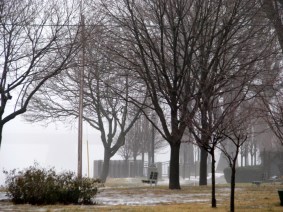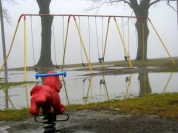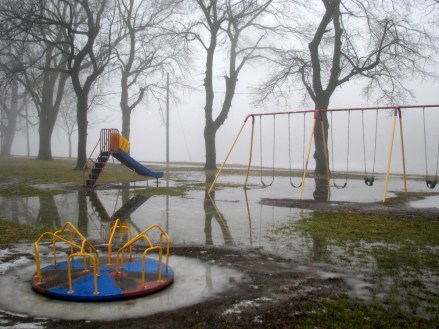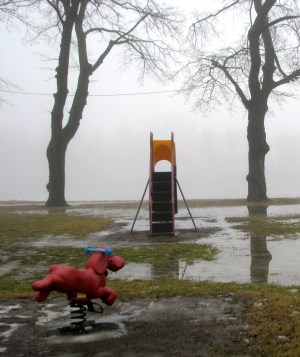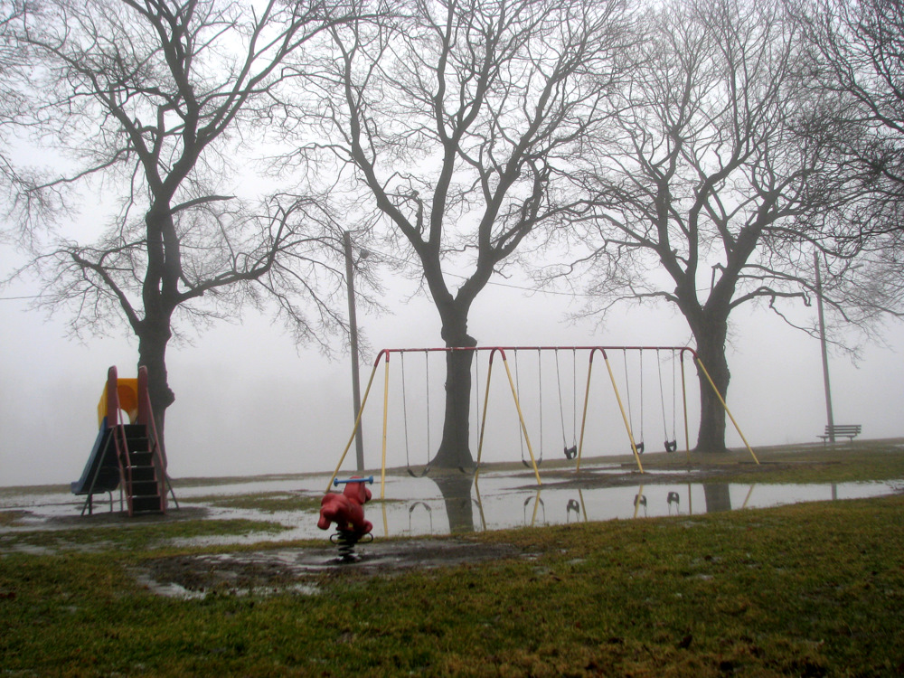 Who could ask for more on a mild January afternoon: fog and puddles, and playground fixtures, in Riverside Park, along the Mohawk River in Schenectady, New York?
