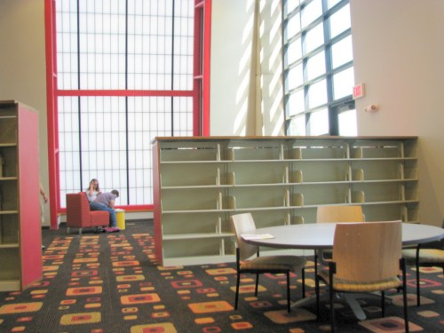 Library’s new Children’s Wing sparkles » interior shot of new Children’s Wing of the Schenectady County Public Library – looking toward parking lot – 01Aug2012