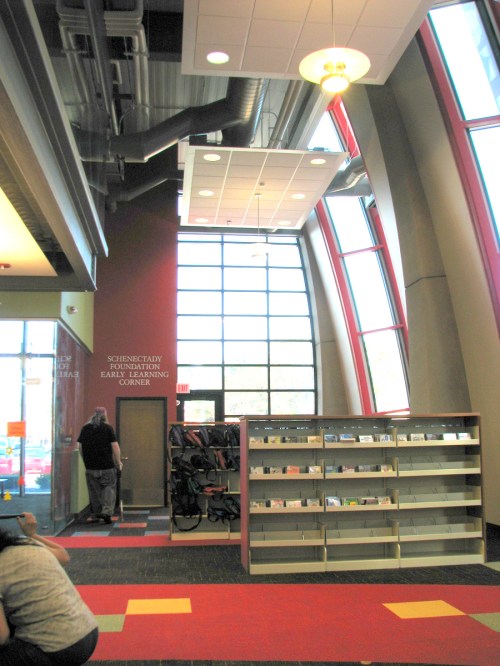 Library’s new Children’s Wing sparkles » interior shot of new Children’s Wing of the Schenectady County Public Library – looking toward parking lot – 01Aug2012