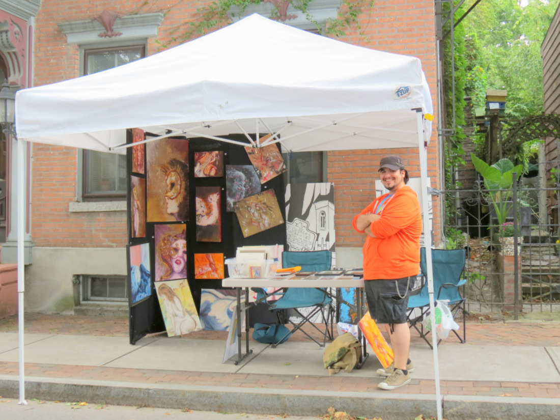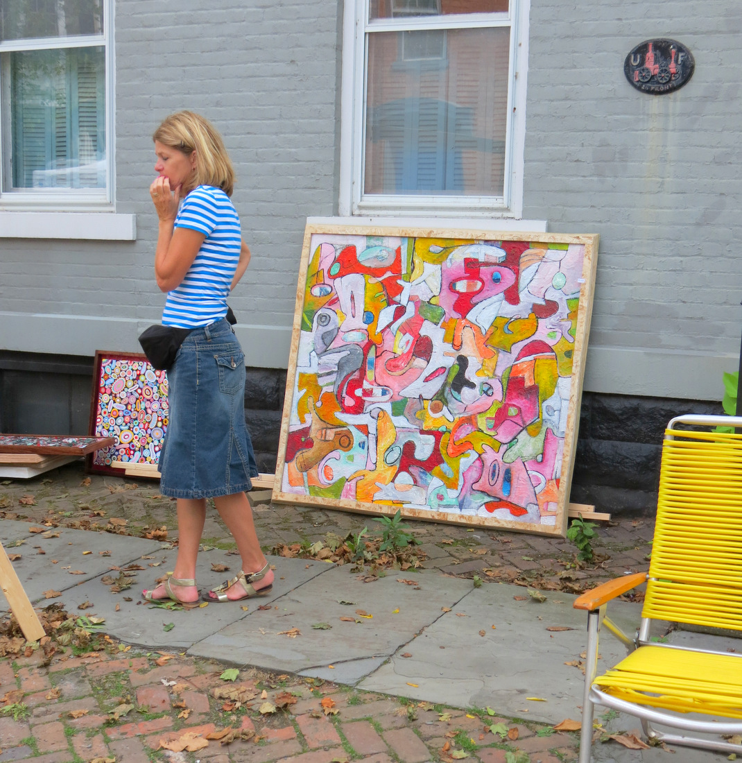 The 61st Stockade Villagers’ Outdoor Art Show [website; Facebook] had to be shortened a bit due to storm warnings, but — after spending about six hours among the art and people, and snapping many photos — it’s easy to conclude that this neighborhood tradition was another enjoyable and successful Stockade event. Here are almost a hundred images of the winning art, and the exhibits, artists and visitors, along with street scenes in our lovely historic district.
