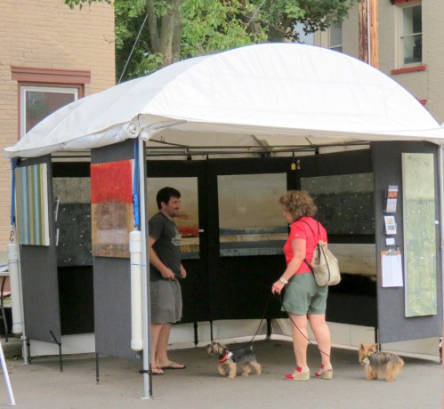 61st Stockade Outdoor Art Show a breezy success » Eric Laffer with a dog and art lover