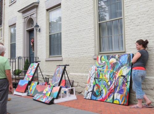 61st Stockade Outdoor Art Show a breezy success » an artist proudly presents her work on Front St.