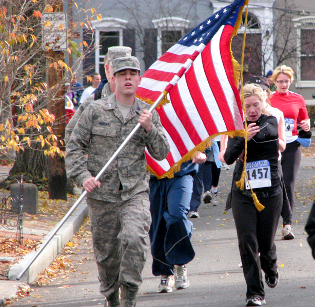 – flag carried up Front St. in the 2010 Stockade-athon –