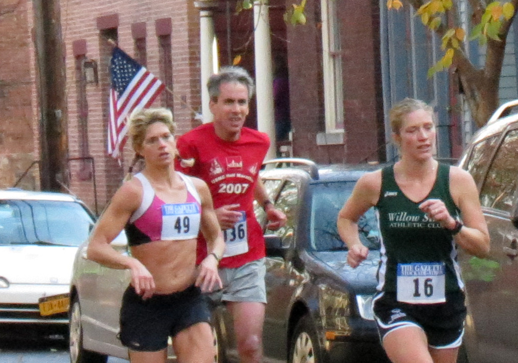 – #1, women’s division winner Maegan Krifchin, at the halfway point; she talks about running with this group of men from this point in a Gazette post-race video. –