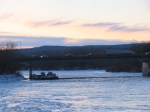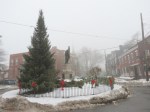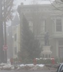 The above slideshow has a couple dozen photos that eased me into 2013. The scenes include a foggy Saturday morning around Lawrence Circle and in Riverside Park; near-sunset views of Gateway Landing and of a barge used in the Western Gateway Bridge construction project from the rear of Cucumber Alley and the end of Washington Avenue; plus, a bright holiday bear banner and an “over-amputated” tree on Front Street.