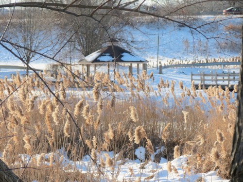 easing into 2013 » a view of the gazebo at Gateway Landing, Rotterdam NY, along the Mohawk River at the Binnekill, seen from the rear of 16 Washington Ave., Schenectady NY Stockade – 14Jan2013