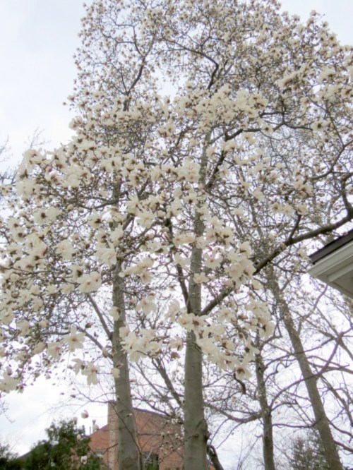 April s&t » first magnolias appear on a tree behind the Schenectady County Historical Society – 20Apr2013