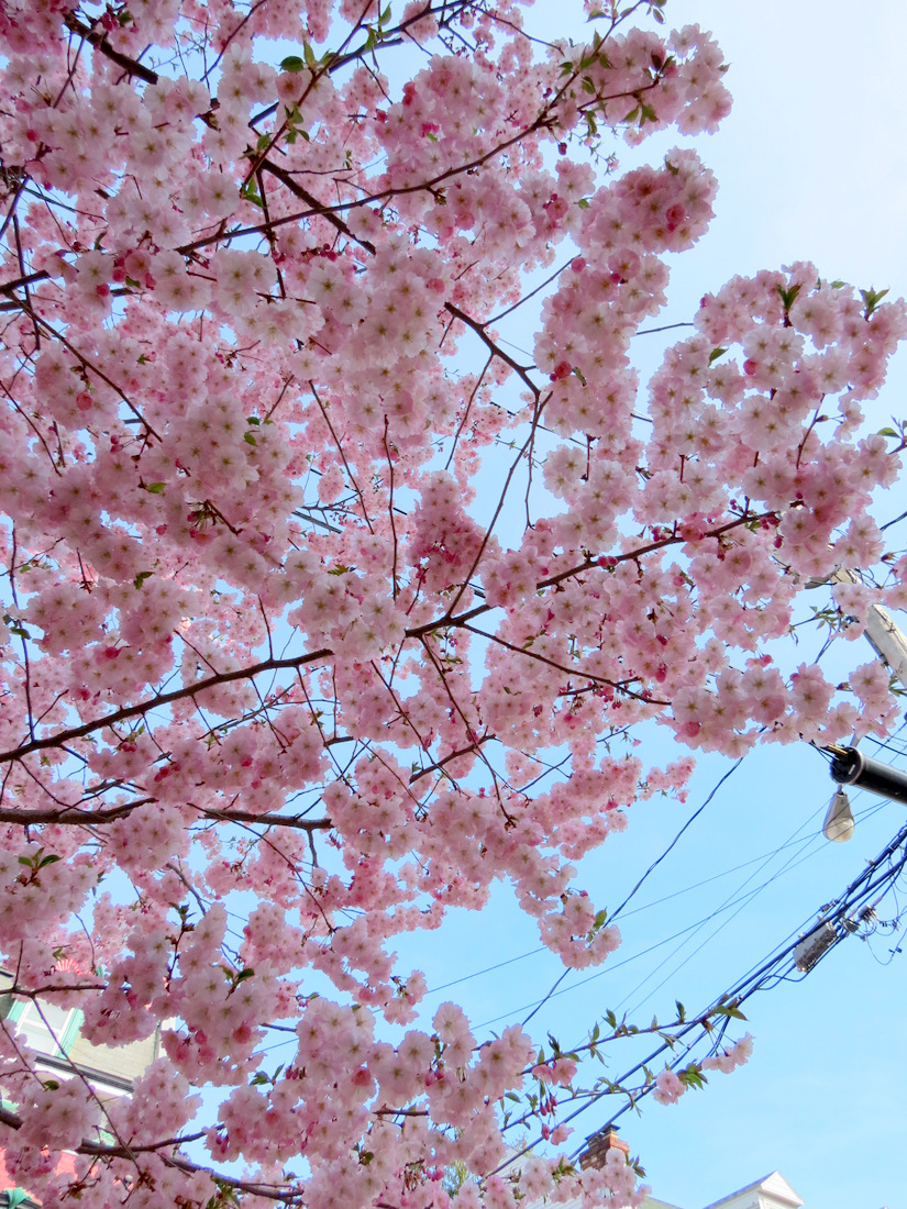 cherry blossoms are showing off again in the Stockade » close-up of a branch of cherry blossoms in front of 16 Washington Ave. – Schenectady NY Stockade — 28Apr2013