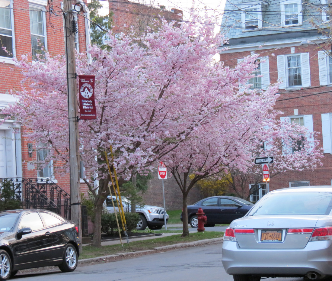 cherry blossoms are showing off again in the Stockade » cherry blossoms in front of 2 Union St. (the old Boy Scouts headquarters,at Washington Ave. – Schenectady NY Stockade — 28Apr2013