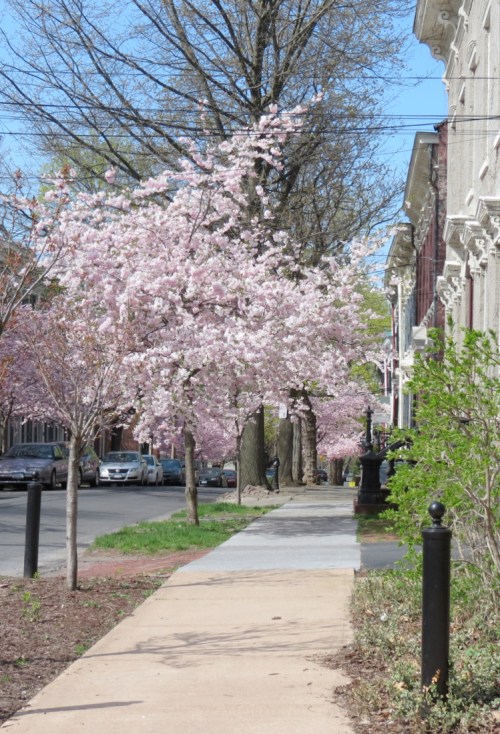 cherry blossoms are showing off again in the Stockade » a view north on the east side of Washington Ave. looking toward Front St. – Schenectady NY Stockade — 28Apr2013