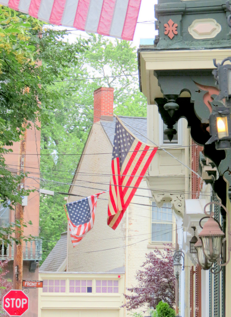 update (Midnight, July 4, 2013): This posting inspired me to set out late in the morning of July 4th to photograph USA flags being flown in the Stockade. About two dozen photos have been added to the slideshow below.