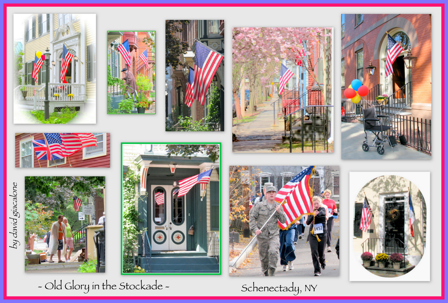 Below is a collage I put together with photos of the American flag being flown in the Stockade neighborhood. Below that is a slideshow with those images (or the original photo from which the detail was taken), plus a few additional shots. Please have a memorable and enjoyable 4th of July.