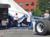 follow-up (6PM, Wednesday, July 17, 2013): With a white picket fence, plus many flags and flowers, and a few more flashes of color, the Zoppé circus tent appears outwardly ready for its opening in Schenectady tomorrow. I’ve added a half dozen images of the final vision to the slideshow.