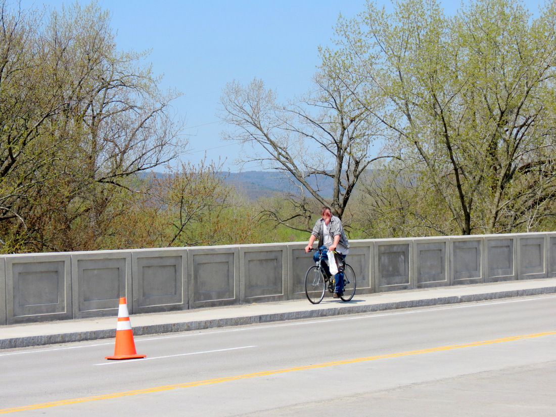– cyclist using the 5′-wide west sidewalk in May 2014 –