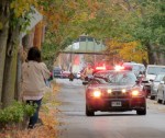 – Mike Fout & Josh Simpson behind the lead car approaching Lawrence Circle –