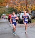 Mike Fout [BIB3] and Josh Simpson [BIB 2] where also the first two runners to reach the Lawrence Circle. Fout had a nice lead, and Simpson was well ahead of the third runner to cross into the Circle, Albany’s Alex Paley [BIB7].