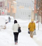 Long before Sunday brunch, I was out strolling with my camera to explore the Stockade after our first real snowstorm of the season. I traversed only Washington Avenue, Front St. to Lawrence, N. Ferry to Union St., Union back to Washington Ave., and then Riverside Park. Snow removal was the predominant activity I encountered, plus a single dog-walker (in the Park), a smoker on a frosty stoop, a pre-schooler helping dad, and a young woman bringing home a steaming cup of coffee for herself and a lucky guy. There were also a pair of police cars and a flatbed tow truck on Union Street, of course.