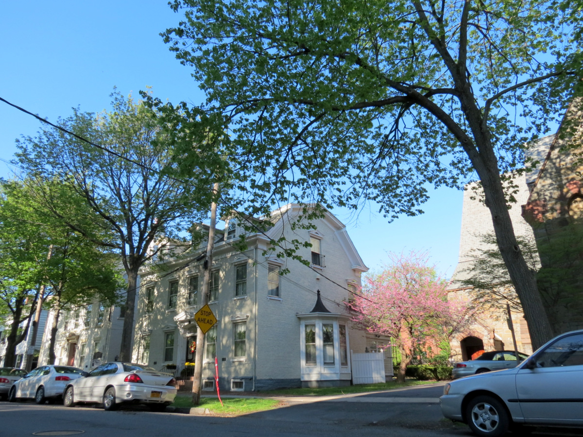Last Saturday (May 17, 2014), I didn’t let the dreary task of taking a few more pictures of the Western Gateway Bridge sidewalks for my Guardrail Petition keep me from noticing how mid-afternoon sunlight can make almost anything (even a pile of mulch) look pretty. In the slideshow below are photos I took on my stroll from the Bridge to North Church across Union, to Front St., and then down Governor’s Lane to Riverside Park, before turning up Washington Avenue to get home.
