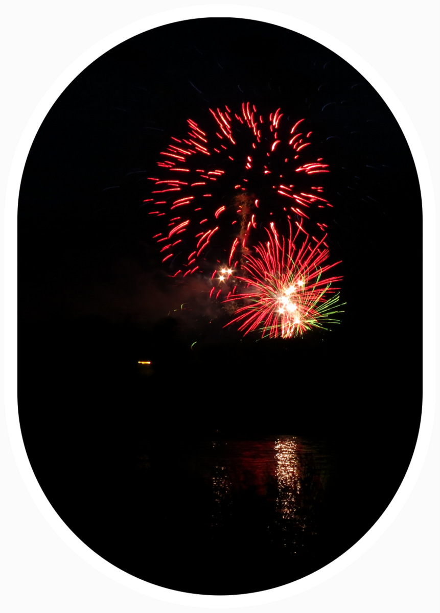 . . fireworks seen over Isle of the Cayugas: [L] 2009; [R] 2013. .