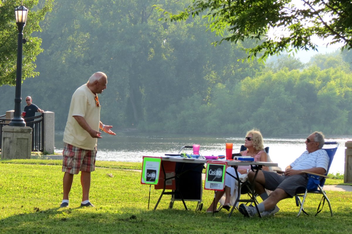 The only noticeable difference this year was the addition of a table near the picnic with No Casino in Schenectady signs and Petitions. It was about as lowkey as an activist incursion can be, and Mohammed Hafez, Linda Kelleher and myself had a nice time chatting with picnickers who came over to sign and/or schmooze. We did not get a boatload of signatures, but we did obtain our 100th signature against the casino by a Stockade resident or owner.(Click here for a copy of the Petition; and learn about the CasiNO campaign at stoptheschenectadycasino.com.)