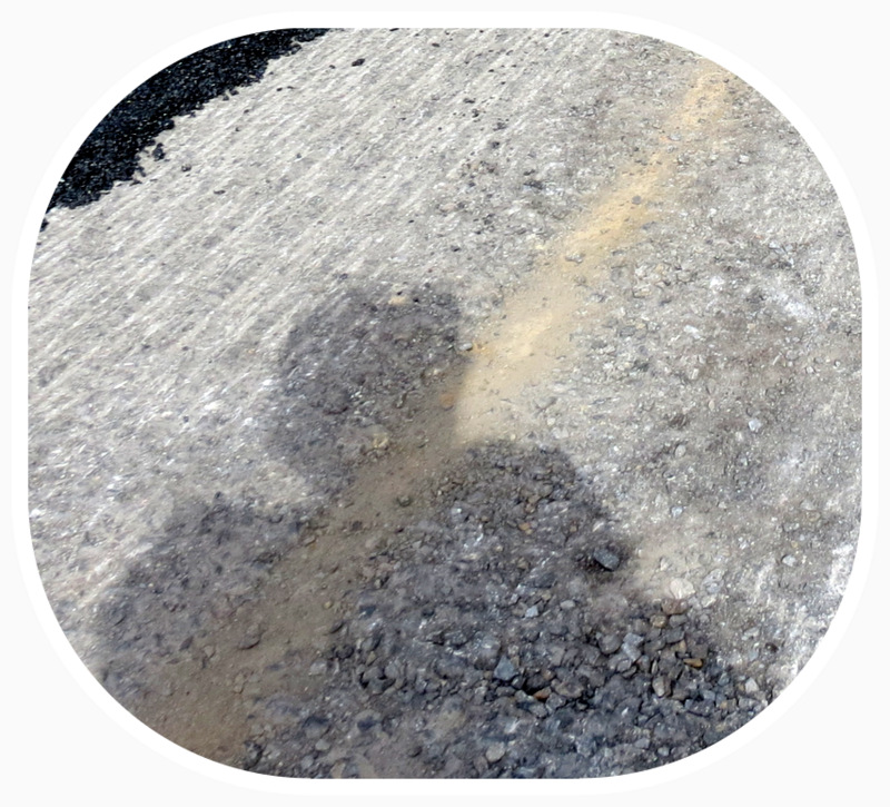 Tracks from the old Washington Avenue horse-drawn trolley were uncovered during the long-overdue repaving of Washington Avenue, which began Friday, October 17, 2014. When I went out this morning to snap a few photos for posterity, I found only one side of the pair of tracks visible, and more than half of it already covered with the new tar.