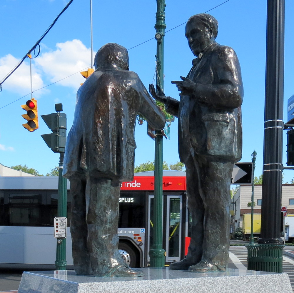 The blue skies and puffy white clouds lured me out late this afternoon to welcome Edison and Steinmetz to our neighborhood. They stand only four blocks down Ferry Street from the Stockade’s beloved Lawrence the Indian. The following Slideshow has a few perspectives on the new statues.