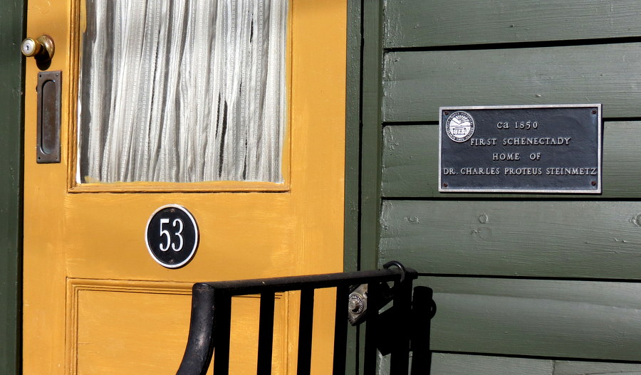 Above: photos of Steinmetz’s first Schenectady home, 53 Washington Ave. in the Stockade (click to enlarge the images).