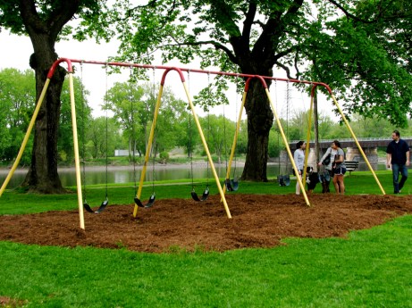 The new equipment and layout at the Riverside Park “playground” may turn out to be adequate, and even fun. (See the New Equipment installation Slideshow, and this posting of the completed play lot.). I’ll be watching and listening to the reactions and assessments of kids and parents over the next few seasons, and seeing whether the new arrangement is as photogenic in the fog and snowstorms. Nonetheless, whatever the verdict may be on the McCarthy Administration “improvements,” I plan to be nostalgic about the Kiddie Lot that I came to know and love over the past two decades for as long as my memory and/or this website is functioning, and to be grateful that the pre-existing Slide has survived the big eviction.