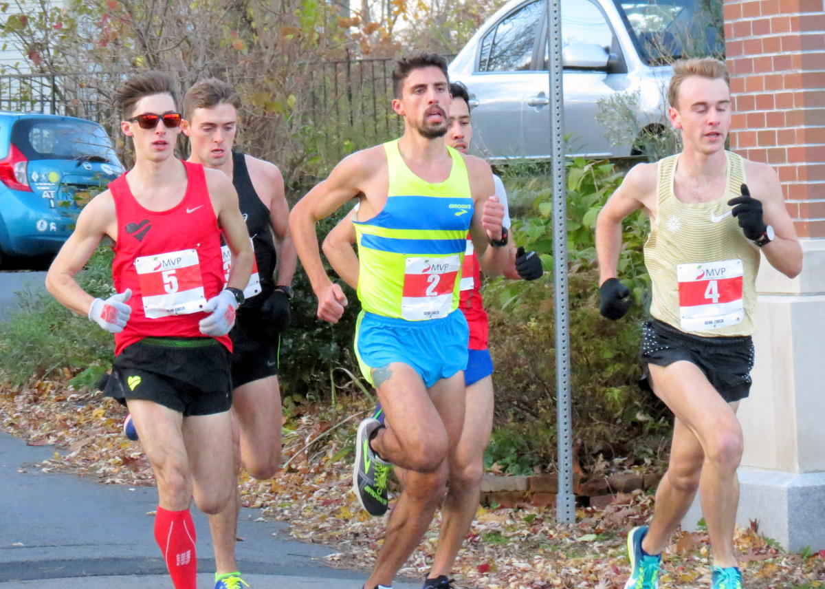 . . above: leaders on Washington Ave.: Louis Serafini [BIB 5]; John Raneri [BIB 2]; Dan Lennon [BIB 4]; Omar Boulama [BIB 6]. update: The top two event winners were Louis Serafini and John Ranieri, with Jake Sienko in 3rd, Dan Lennon in 4th, and John Busque in 5th.