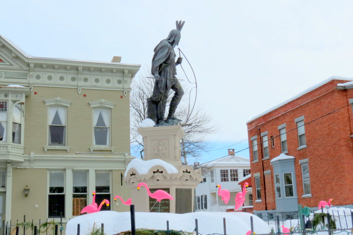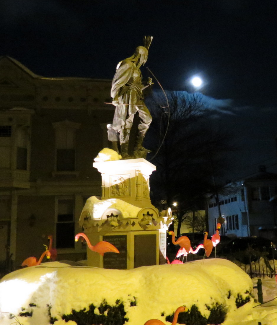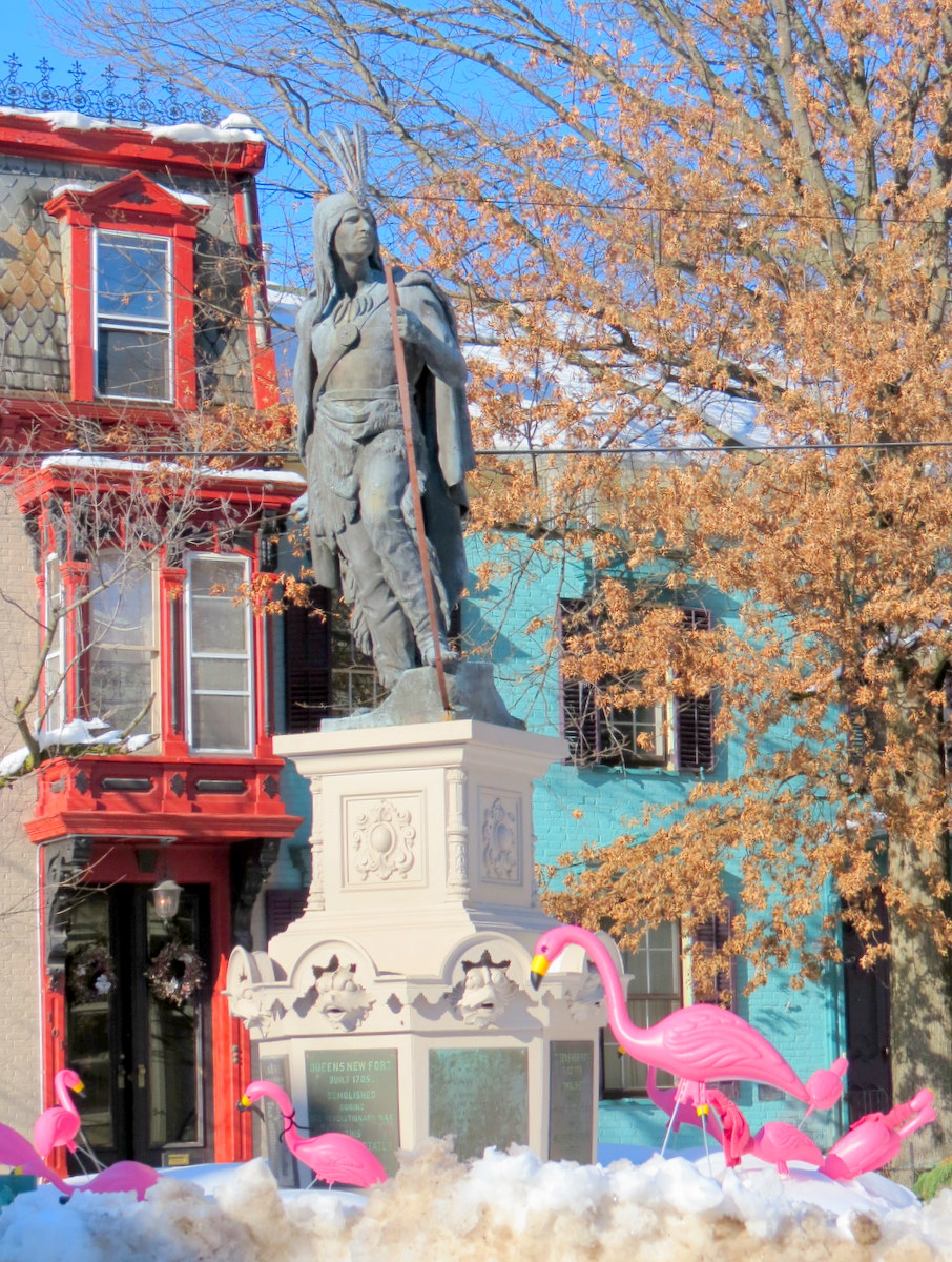 Once we have some Valentine Day daylight, and maybe even a bit of blue sky, our editor will get his old Canon back to Lawrence Circle, and post a flock of photos. If you need a Flamingo Fix before then, see the links on our Valentine Flamingo Category page, or view the 20-page photobook “Valentine Flamingos in the Schenectady Stockade: whimsy and mystery at Lawrence Circle” (3rd Edition, 2016; contact us to obtain a copy for our price to print it).