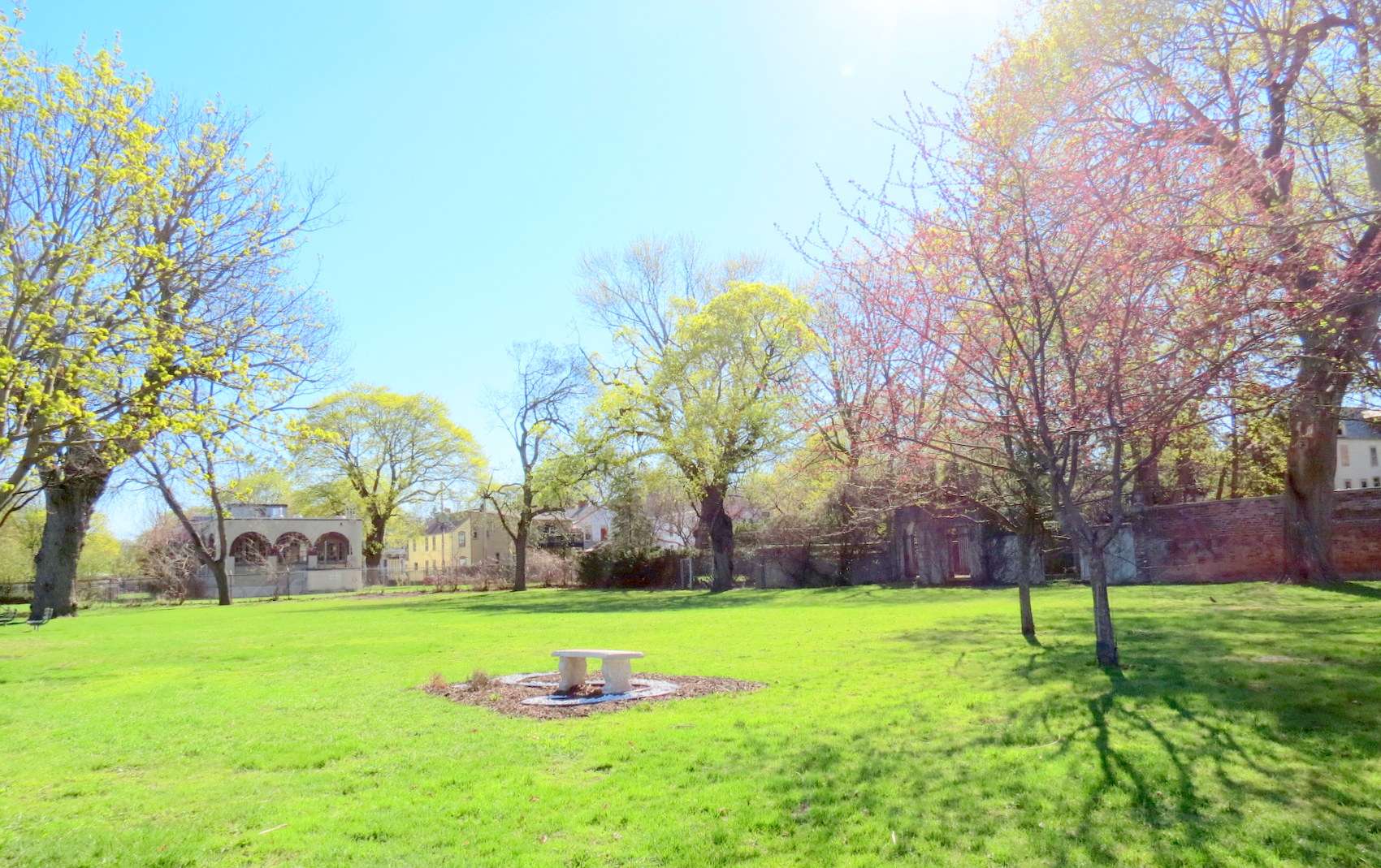 To the contrary, we stroll by the West Lawn of Riverside Park on the Park’s one footpath when entering or leaving the Park from Washington Avenue or Governor’s Lane, and enjoy both its calmness when unoccupied and its activity when in use. We play bocce and frisbee on it, and run with our dogs and children. We sit on its benches to read, watch sunsets and crew sculls, tugboats and party boats on the Mohawk, and also heron on the Isle of the Cayugas or Scotia shore. We have picnics there, or quiet dates on a blanket. We occasionally see wedding parties and fashion models being photographed in front of Governor Yates’ brick wall, and the unique ornamental wall at the foot of what is now St. George’s parsonage. We also very much enjoy a rare view of Stockade “backyards” — long, rolling or terraced yards of homes along Front Street.