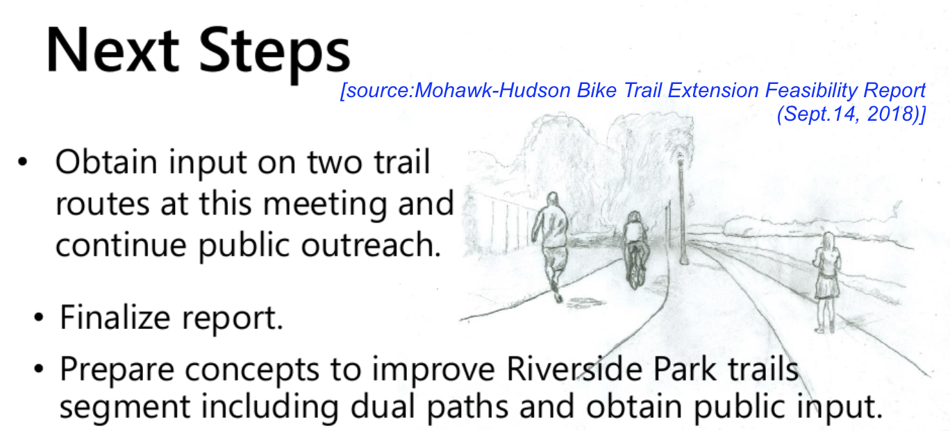 Raise Your Voice & Your Pen. If you are concerned about the impact of a shared-used bike path in Riverside Park, please do not merely smack your head or give up in despair over another Dorp Done Deal. Although Bike Schenectady has been approved as setting forth a framework, each segment of the City bike infrastructure is still being evaluated, with the Mohawk River Trail segment undergoing engineering and feasibility studies.