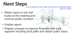 update (June 22, 2018): You can see our summary of the County’s Trail Extension Feasibility Study, here. Its suggestion of giving Riverside Park a two-path reconfiguration, separate paths for pedestrians and for cyclists, seems promising when compared to converting the existing walkway into a shared-use path. Of course, we need to see details to evaluate the impact on the Park and its users, and may conclude that allowing bike traffic is simply too much of a risk. [Note: The two-path configuration, seen in the thumbnail image at the head of this paragraph, was never seriously considered or approved.]