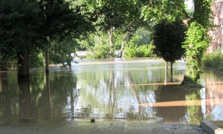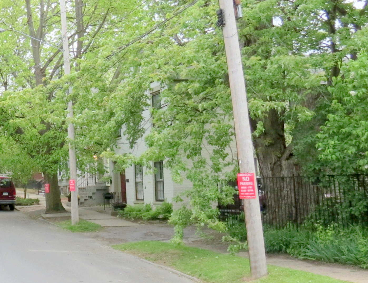 Meredith Anker’s home at 4 Washington Avenue, in the Schenectady Stockade Historic District, was constructed circa 1820. It was built along the Washington Avenue lot line, with no front lawn, but a spacious rear and side yard that borders the Mohawk River. Flooding in 2011 due to waters associated with Hurricane Irene did dramatic and traumatic damage to the first floor of Meredith’s home. Immediately below are photos of the front of the house and its yard taken last May: