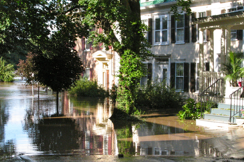 . . left: flood waters from Hurricane Irene at River end of Washington Ave. with #4 & #6 on left . .