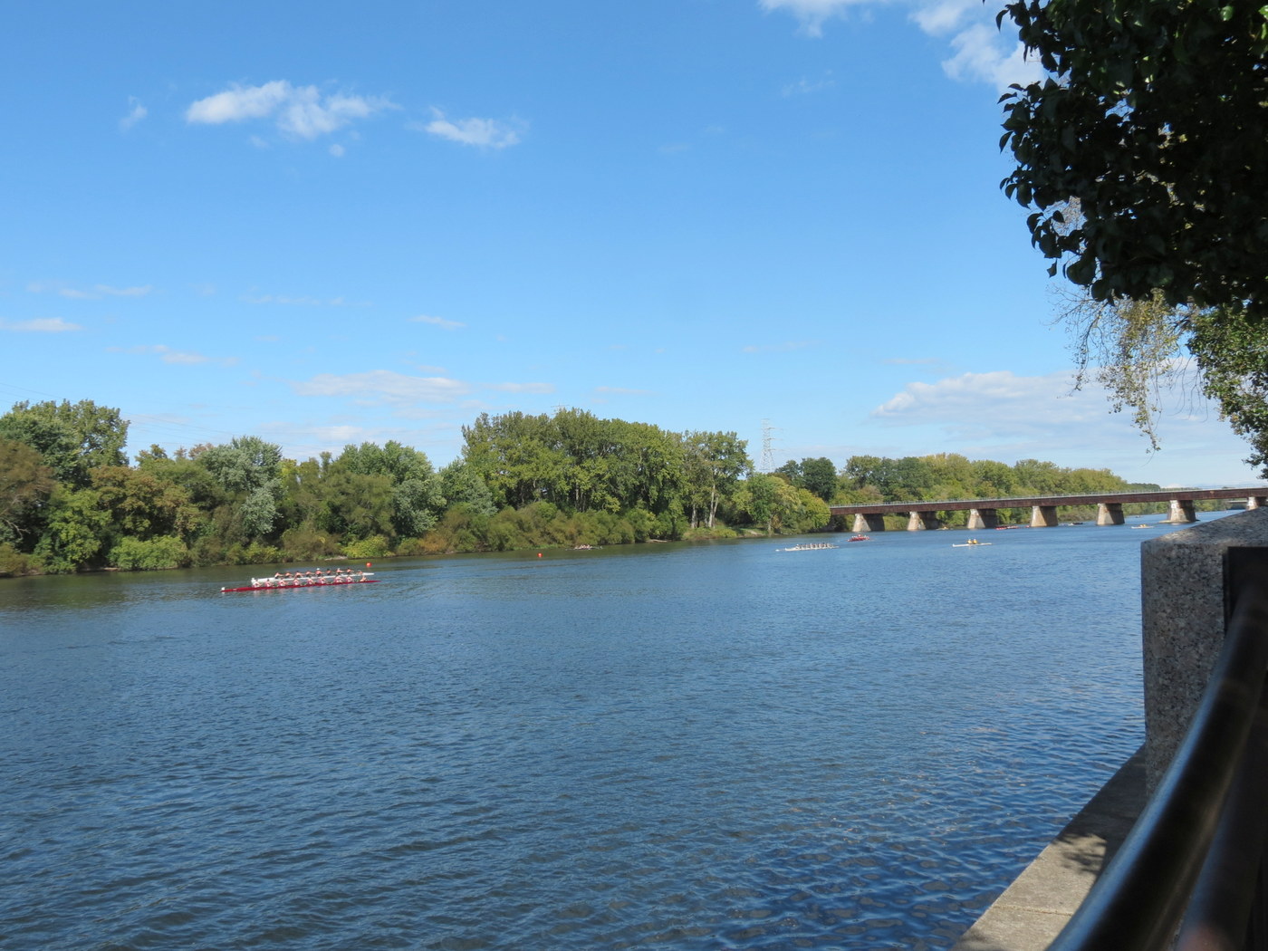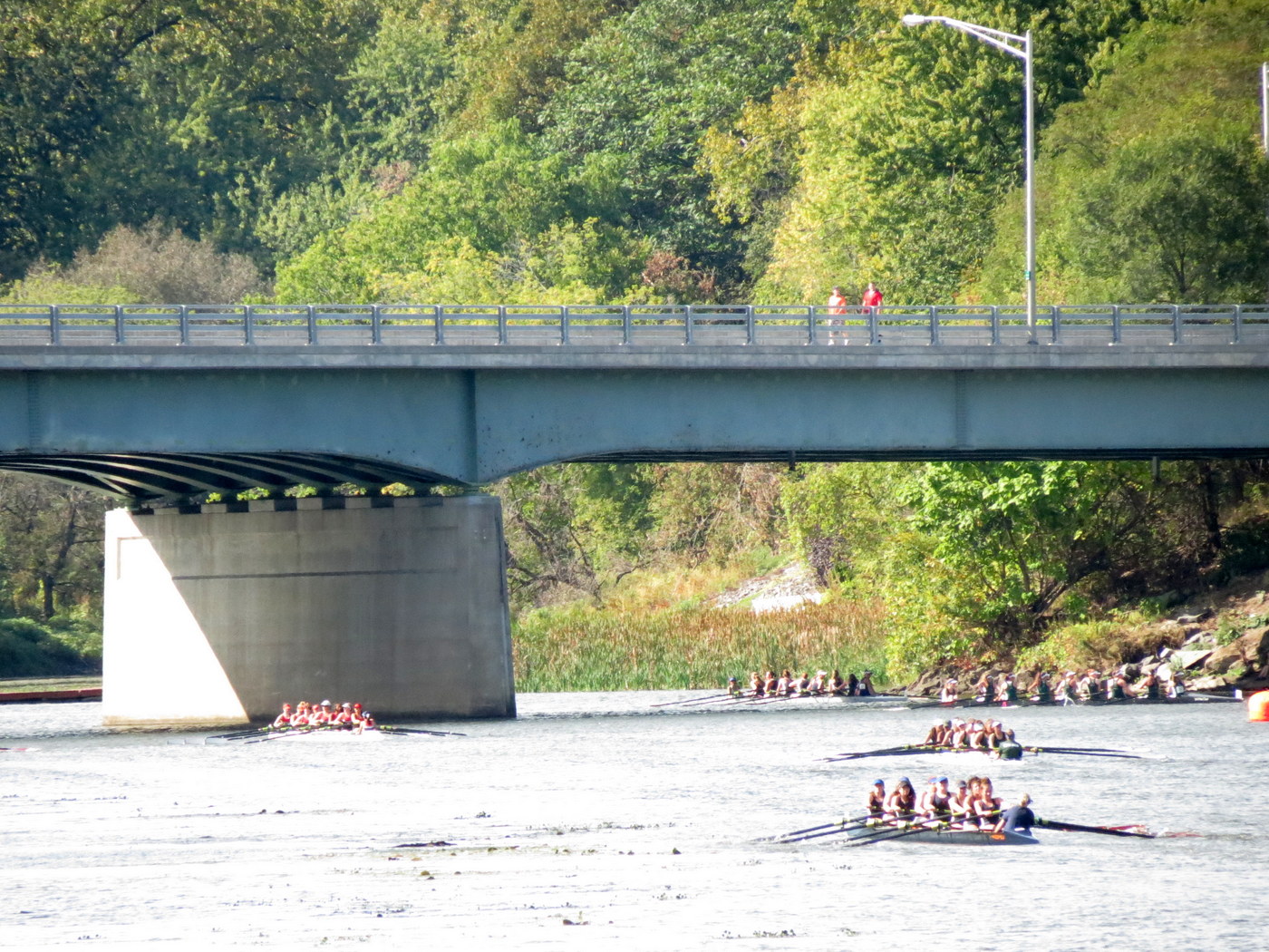 Despite a relatively small zoom lens, I tried to capture some of the action and color of the 2017 Mohawk Fall Classic Regatta [Facebook page] from the west end and esplanade Overlook of Riverside Park, on the Schenectady side of the Mohawk River. Hosted by the Burnt Hills Rowing Association, the event is held on the Scotia side of the River, with crowds gathering at Jumpin’ Jack’s Drive-In and Freedom Park. As explained at the BHRA website: