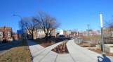 As you can see in the collage at the head of this posting, the drawings from the Plan, and the Slideshow below, features of the park include contemporary sculptures, rain gardens, seating terraces and a Great Lawn. The Central Sculpture has not yet been placed and, naturally, the gardens and various plantings must await Spring.