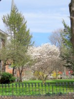 A warm and sunny May 1st gave me my first opportunity to enjoy and photograph healthy arrays of blossoms in the Schenectady Stockade — at this point, mostly white magnolias on trees and cherry blossoms on a few neighborhood trees that traditionally bloom first. I’m pleased to see healthy buds on other cherry blossom trees that will sure be popping within another day or two of sun and warm temperatures, as well as pink magnolias on the verge, plus some red bud trees about to burst.