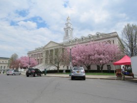 No, I did not go everywhere in Schenectady and environs where lovely arrays of cherry blossoms can be found outside the Stockade neighborhood [you can go here to see our extensive 2018 Stockade blossom coverage]. But, I did go to City Hall (on Thursday, May 3), and to Congregation Gates of Heaven and Central Park (on Saturday, May 5). It is now rather official: I have taken enough blossom photos for 2018, and while they last I plan to actually observe them in person, with my own eyeballs.